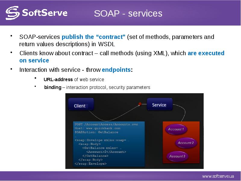 - 8. SOAP - services SOAP-services publish the “contract” (set of methods, parameters