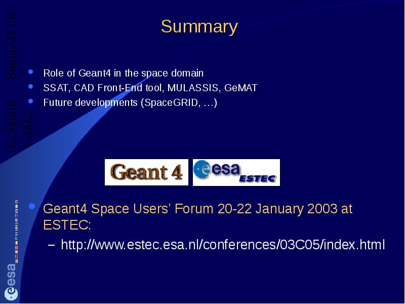 - 17. Summary Role of Geant4 in the space domain SSAT, CAD Front-End
