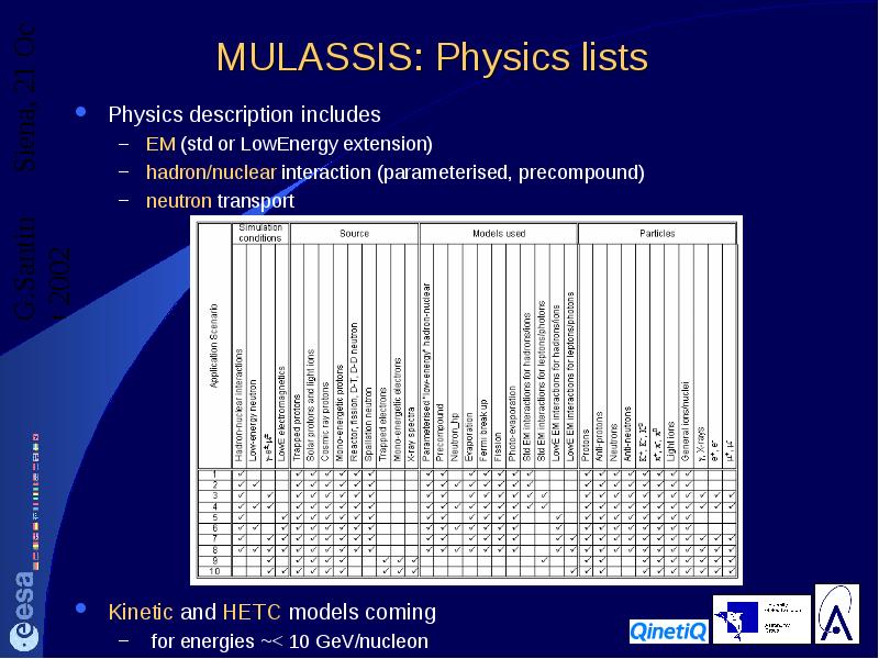 - 9. MULASSIS: Physics lists Physics description includes EM (std or LowEnergy extension)