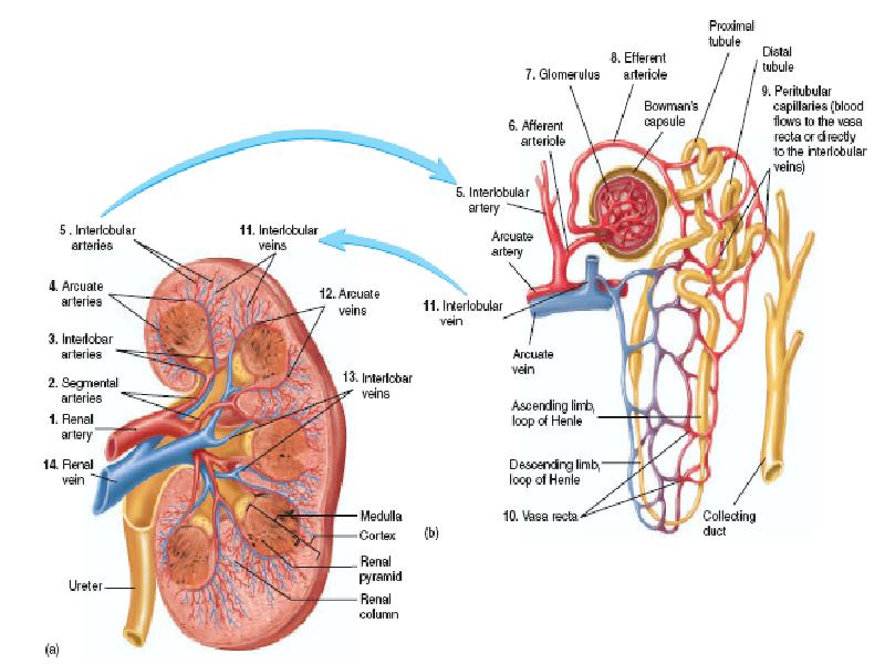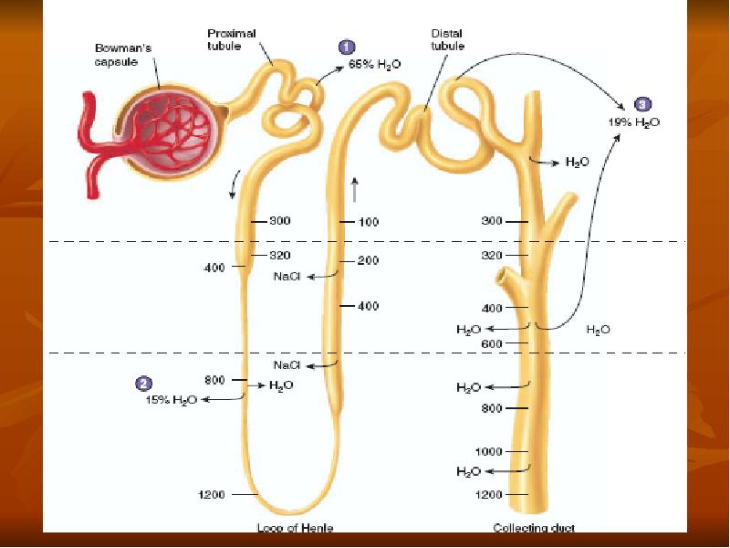 - 19. Urine formation begins with filtration from the glomerular capillaries into Bowman's