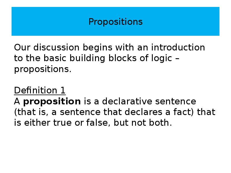 - 2. Propositions Our discussion begins with an introduction to the basic building