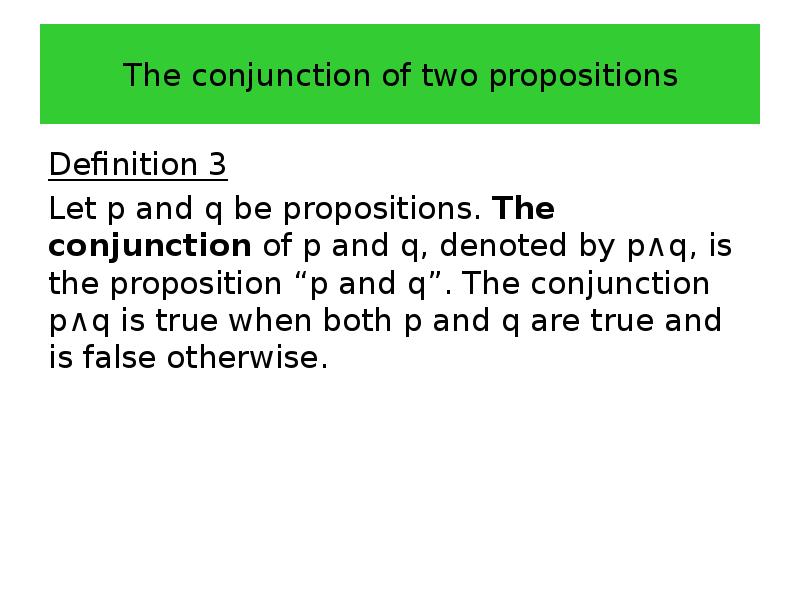 - 12. The conjunction of two propositions Definition 3 Let p and
