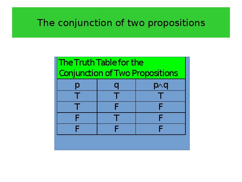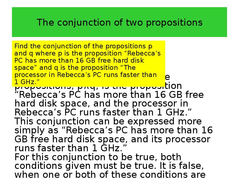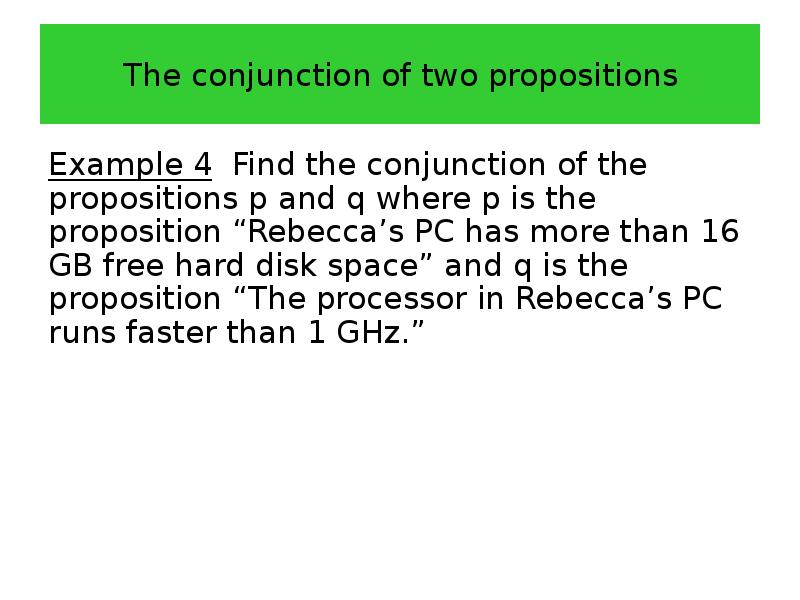 - 14. The conjunction of two propositions Example 4 Find the conjunction of