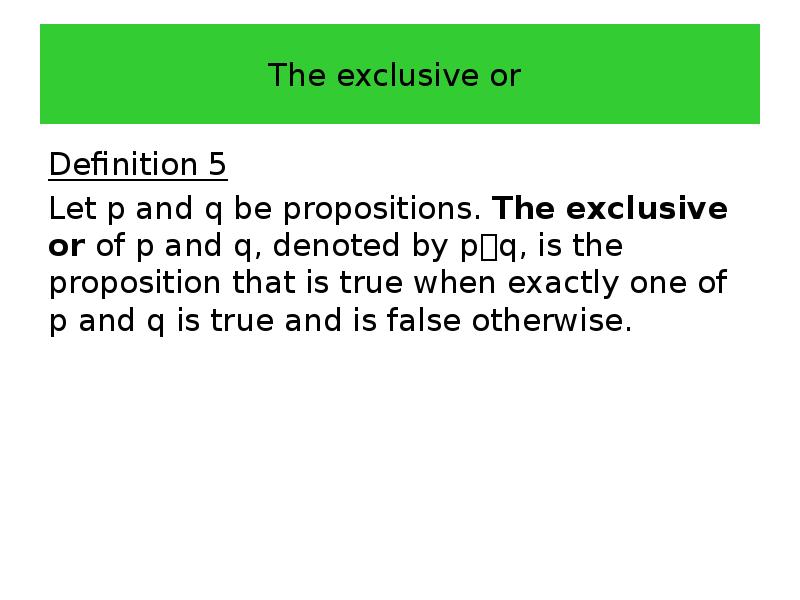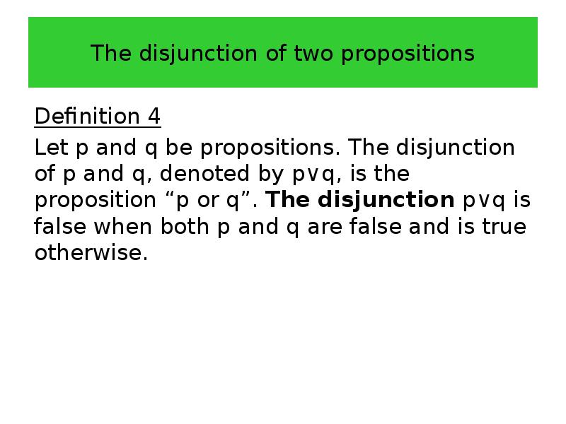 - 16. The disjunction of two propositions Definition 4 Let p and