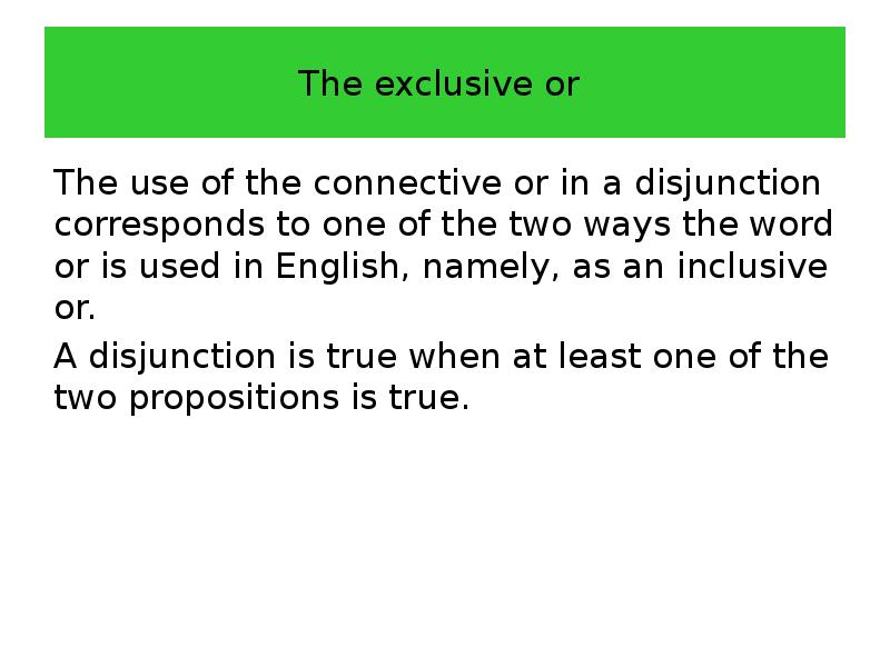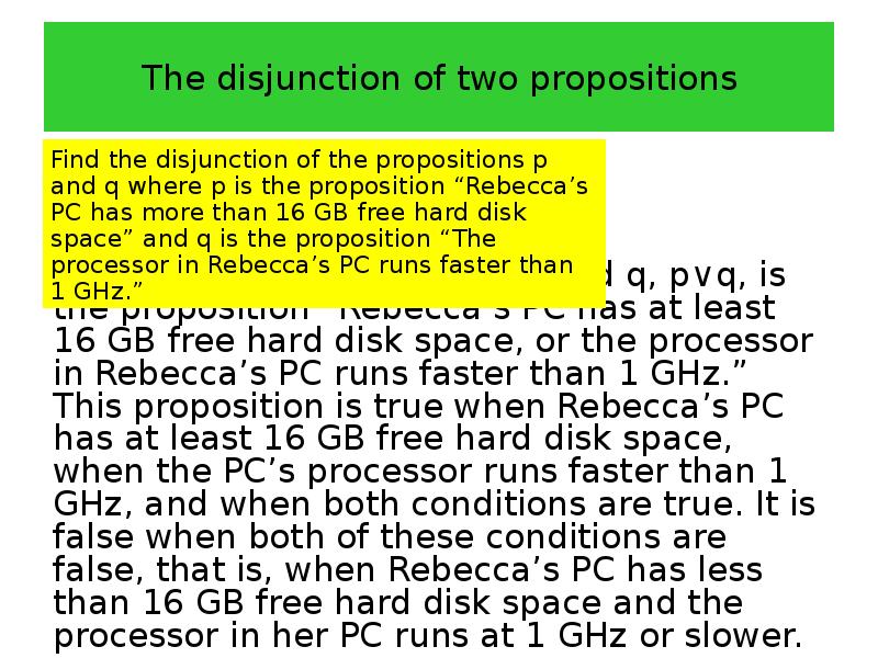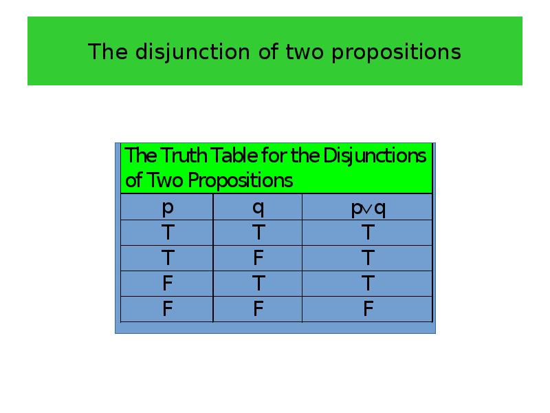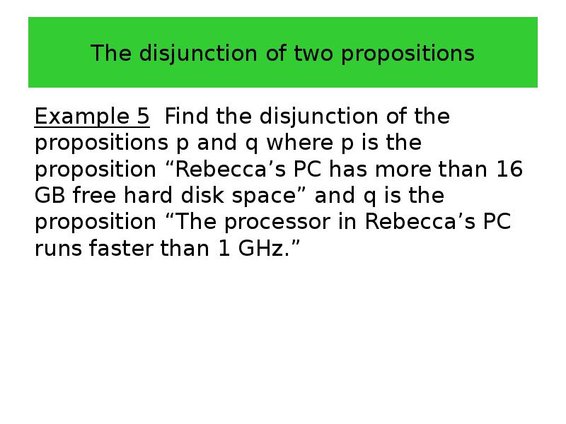 - 18. The disjunction of two propositions Example 5 Find the disjunction of