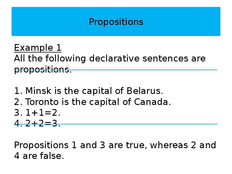 - 3. Propositions Example 1 All the following declarative sentences are propositions.