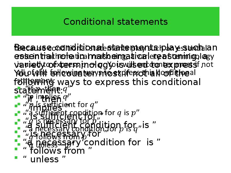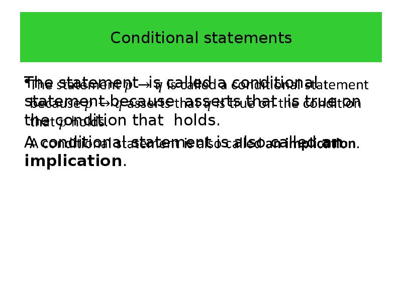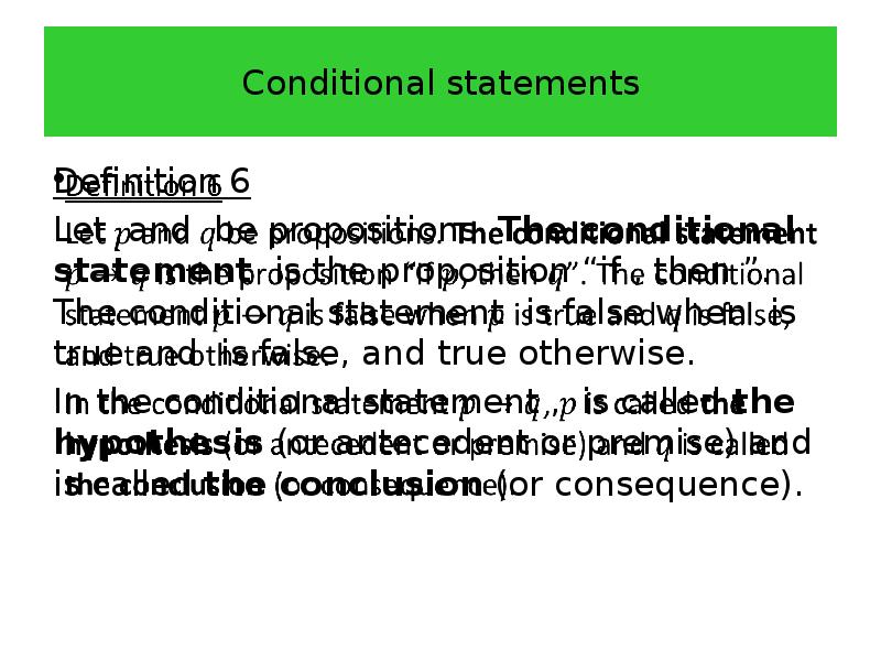 - 24. Conditional statements Definition 6 Let and be propositions. The conditional