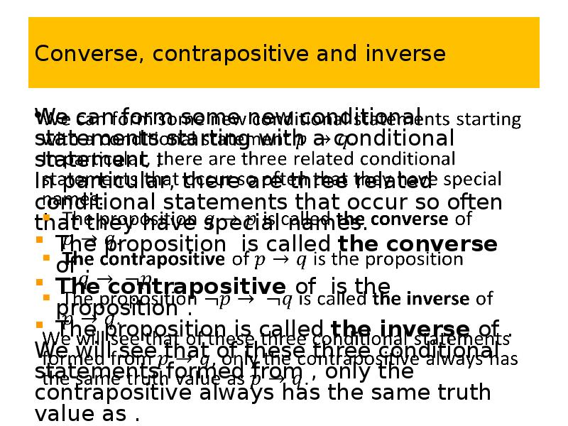 - 29. Converse, contrapositive and inverse We can form some new conditional