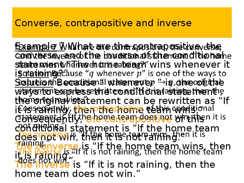 - 30. Converse, contrapositive and inverse Example 7 What are the contrapositive,