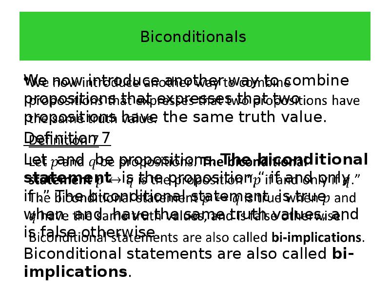 - 31. Biconditionals We now introduce another way to combine propositions that