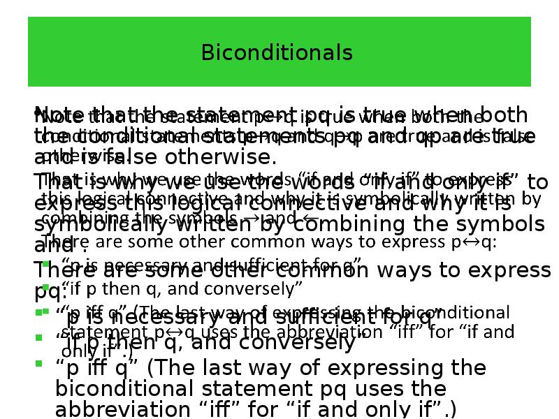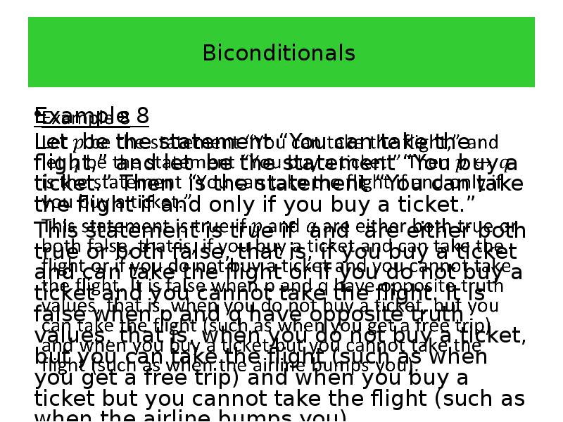 - 34. Biconditionals Example 8 Let be the statement “You can