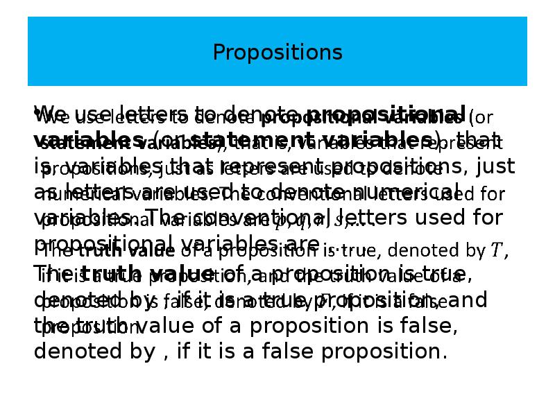- 5. Propositions We use letters to denote propositional variables (or statement variables),