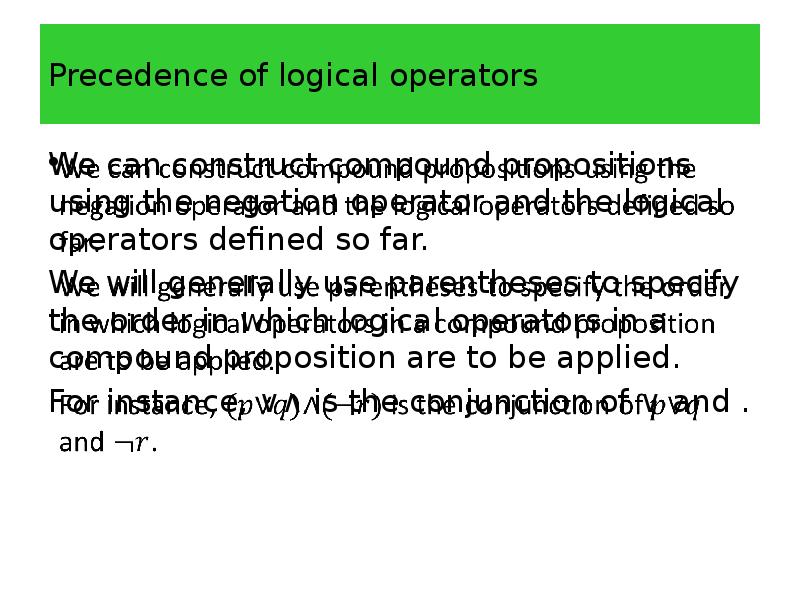 - 44. Precedence of logical operators We can construct compound propositions using the