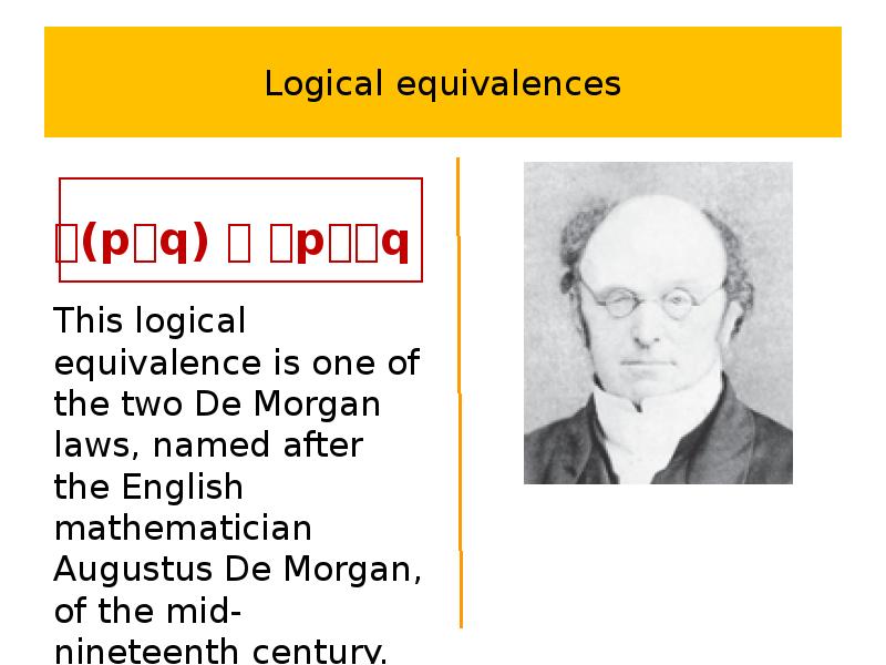 - 62. Logical equivalences (pq) pq This logical equivalence is