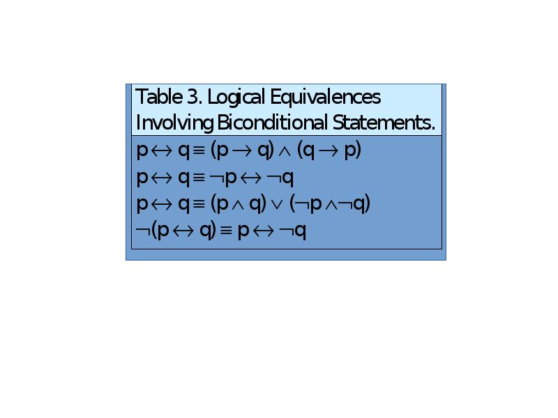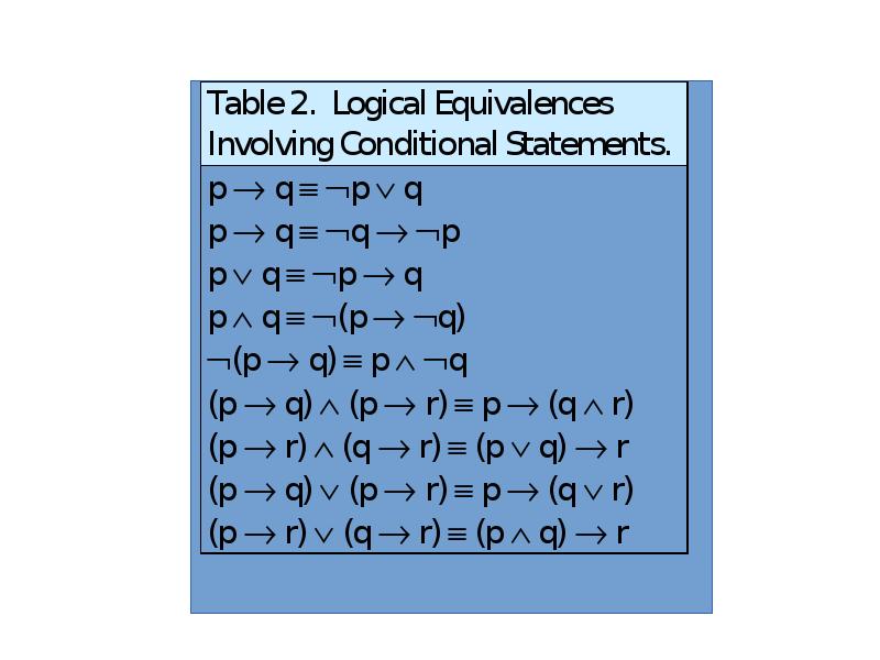 - 80. Logical equivalences Next table contains some important equivalences. In these