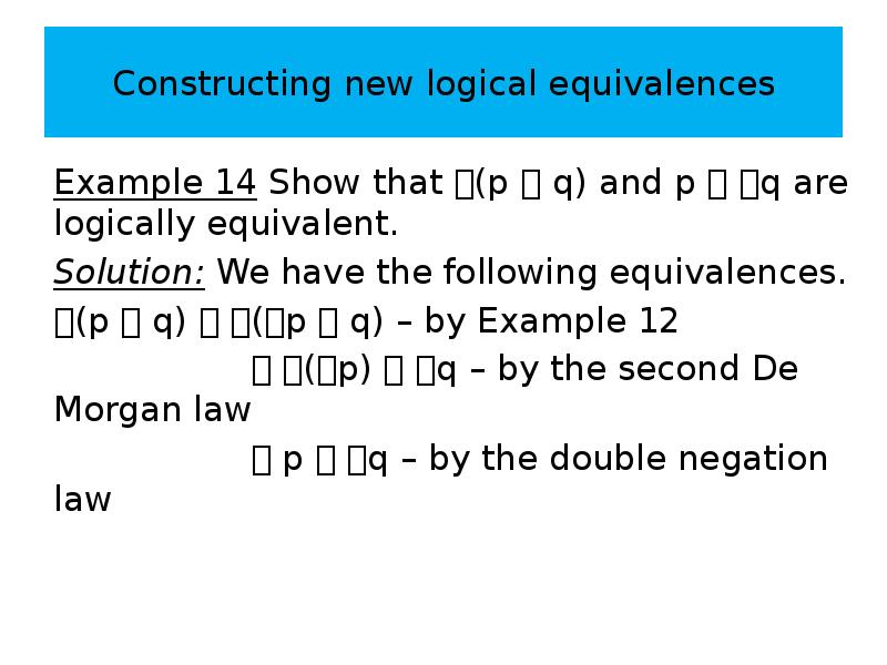 - 91. Constructing new logical equivalences Example 14 Show that (p q)