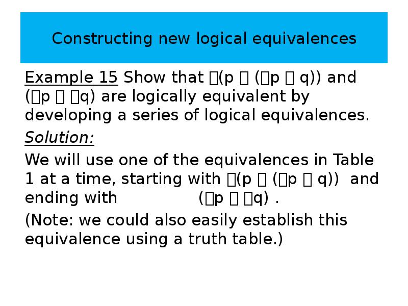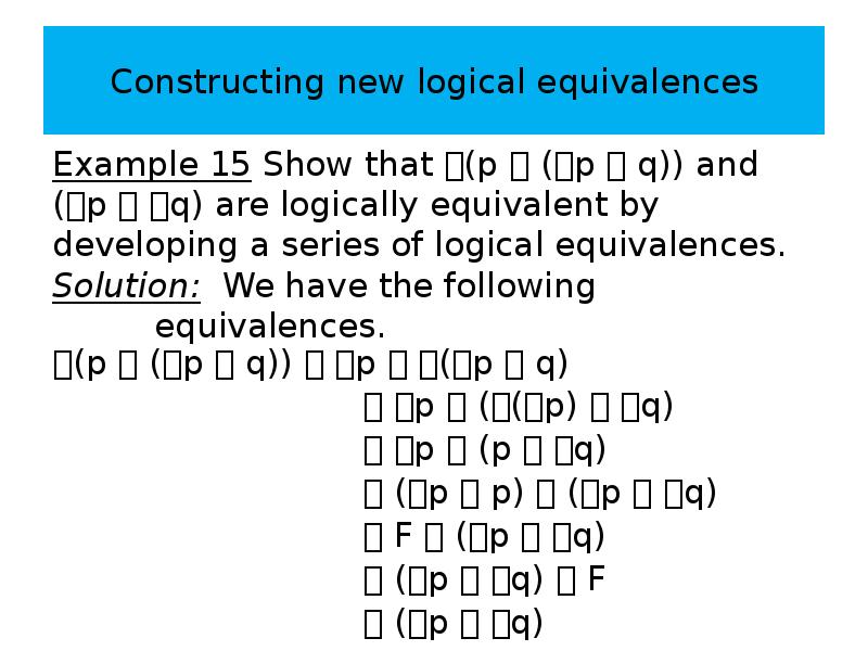 - 94. Constructing new logical equivalences Example 15 Show that (p (p