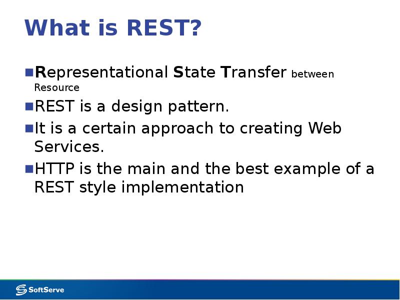 - 2. What is REST? Representational State Transfer between Resource REST is a