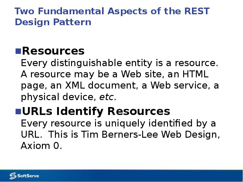 - 18. Two Fundamental Aspects of the REST Design Pattern Resources Every distinguishable