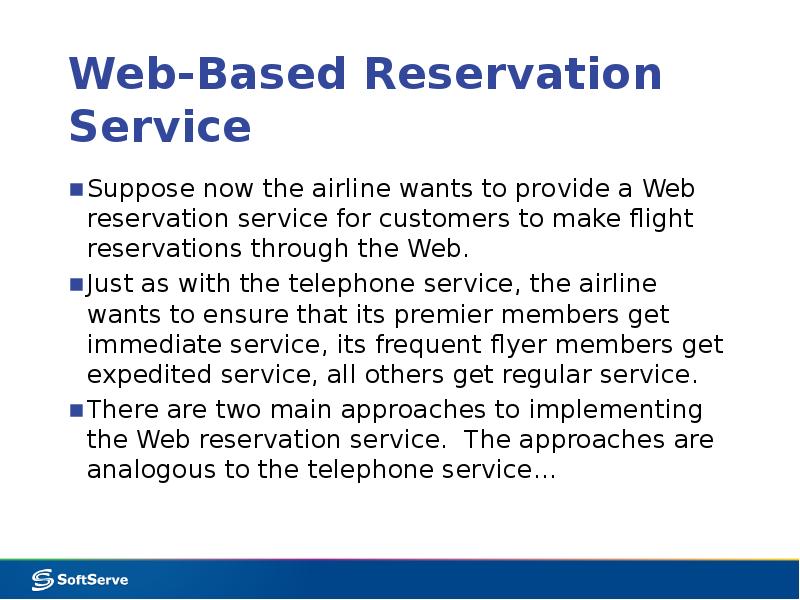 - 7. Web-Based Reservation Service Suppose now the airline wants to provide a