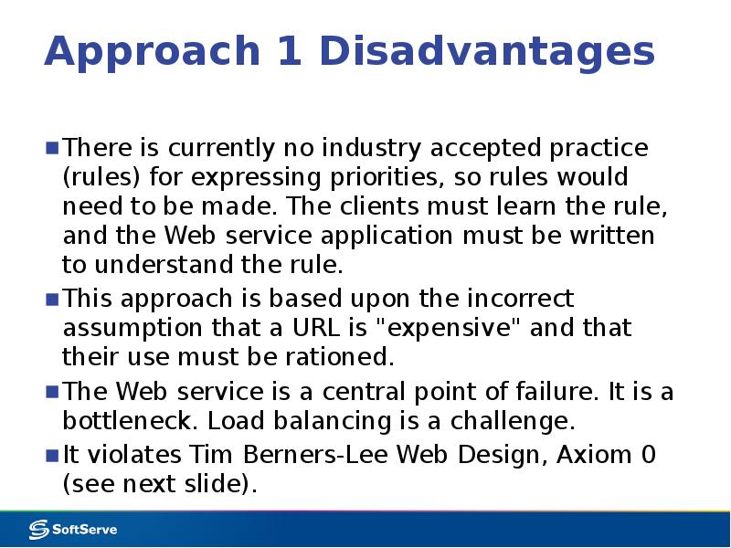 - 9. Approach 1 Disadvantages There is currently no industry accepted practice (rules)