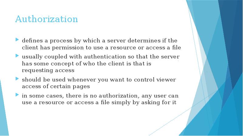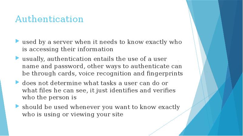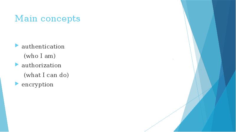 - 2. Main concepts authentication (who I am) authorization (what I can do)