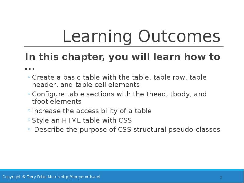 - 2. Learning Outcomes In this chapter, you will learn how to ...