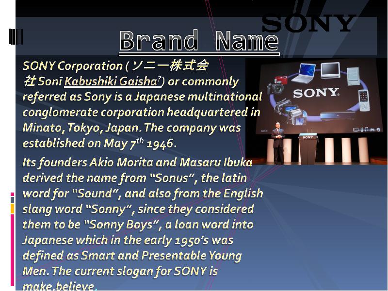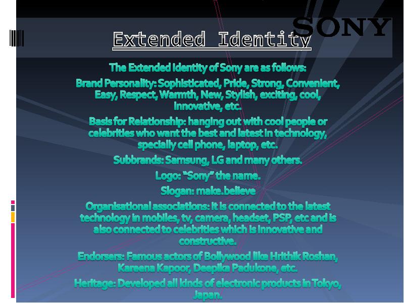 - 14. The Core Identity of Sony is what the Brand’s slogan is