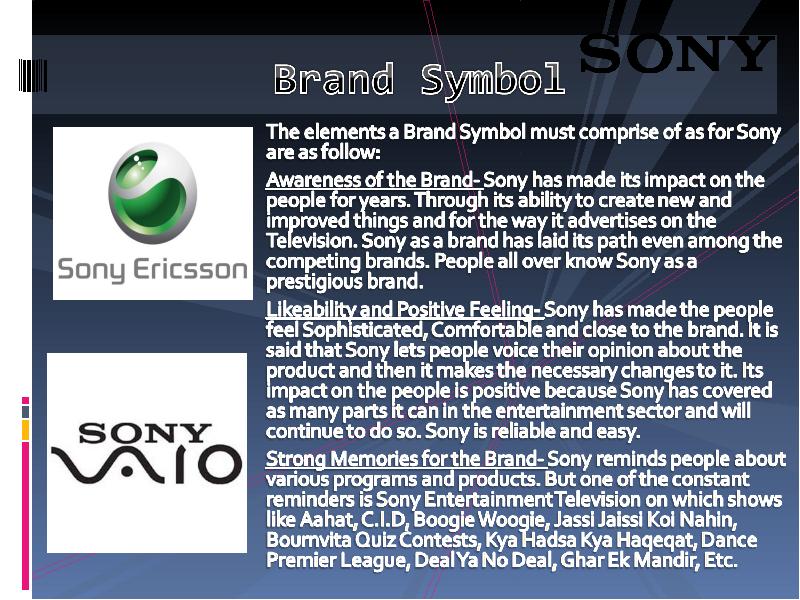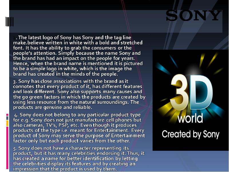 - 12. Sony has certain traits attached to it are as follows: Sony