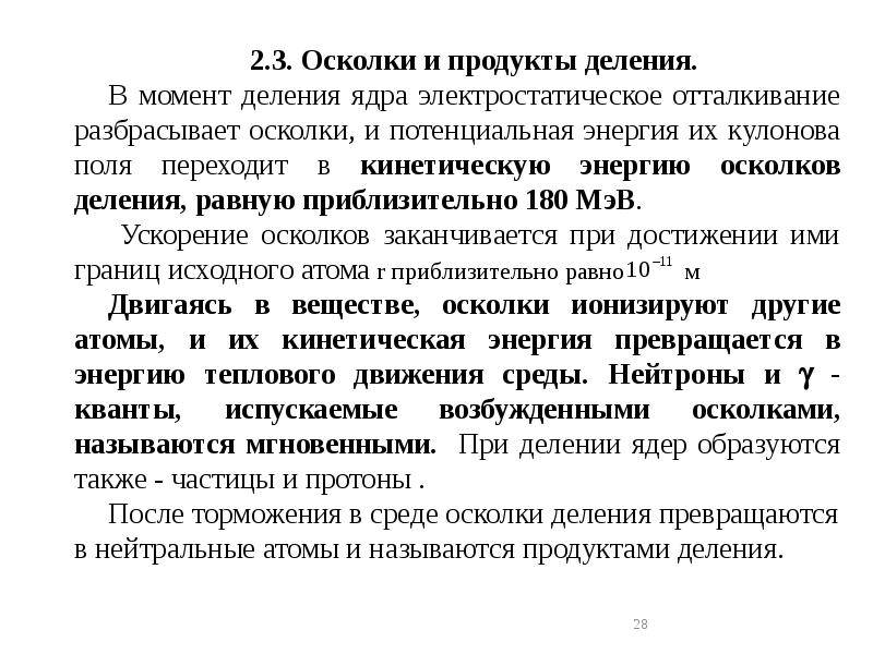 - 29. При делении нейтронами отношение масс осколков примерно 3:2. При делении