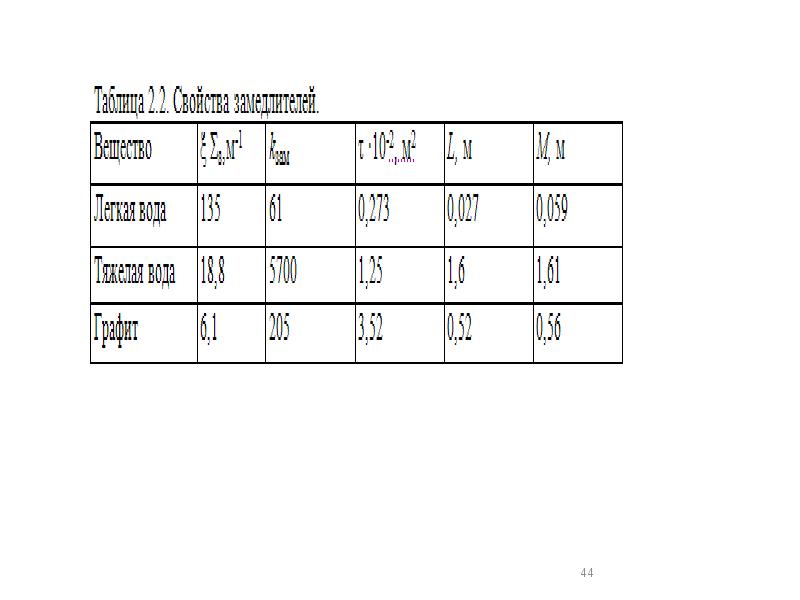 - 47. Таблица Время замедления, диффузии и полное время жизни нейтрона в чистом