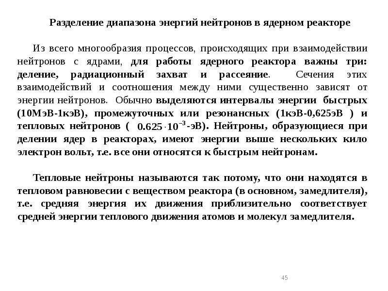 - 43. В процессе замедления до тепловой области нейтрон испытывает большое число столкновений
