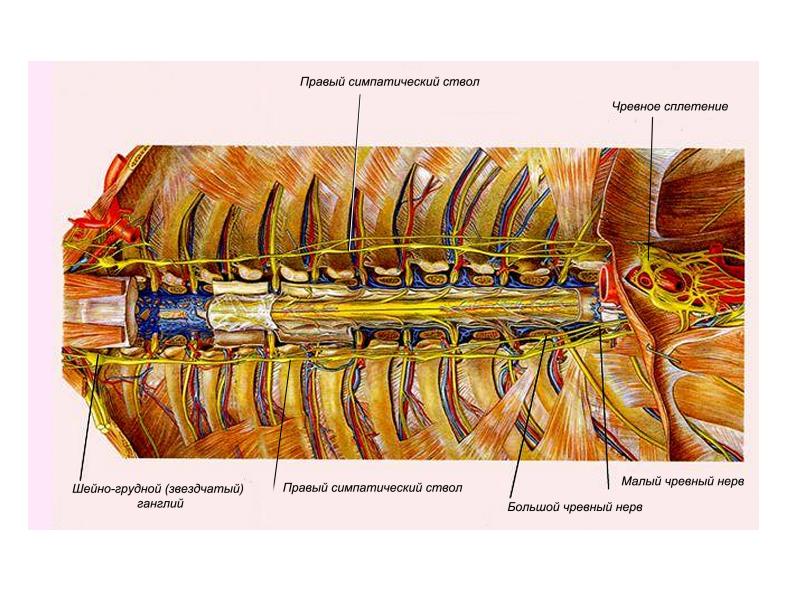 - 16. Грудная часть симпатического ствола простирается от звездчатого узла до диафрагмы. Ствол