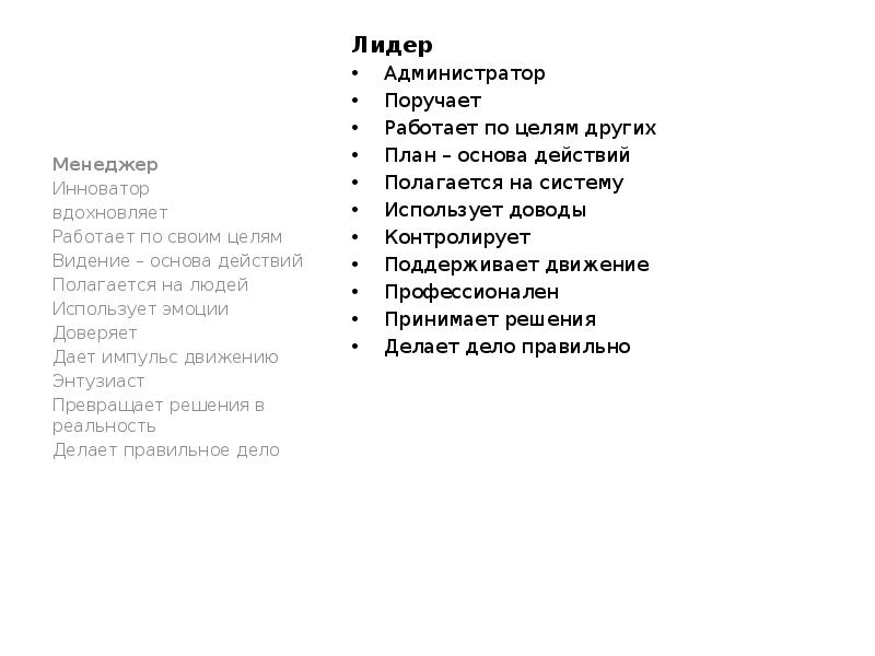 - 4. Лидер Лидер Администратор Поручает Работает по целям других План – основа