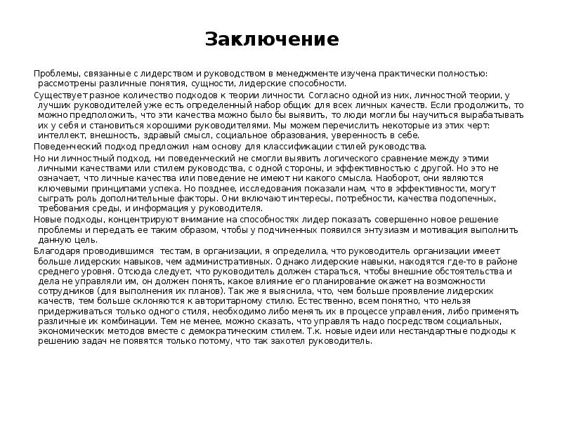 - 10. Заключение Проблемы, связанные с лидерством и руководством в менеджменте изучена практически