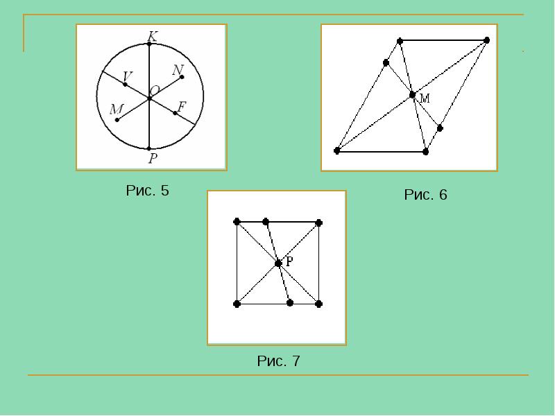 - 6. Фигуры, симметричные относительно какой–либо точки называются центрально-симметричными фигурами