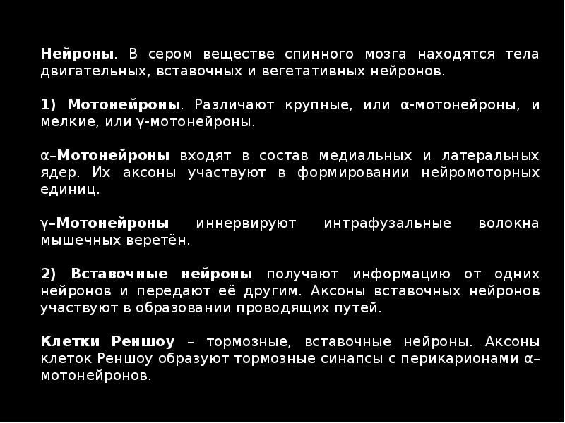 - 61. Нейроны спинного мозга (13 млн.): 1. Двигательные или мотонейроны (3%):