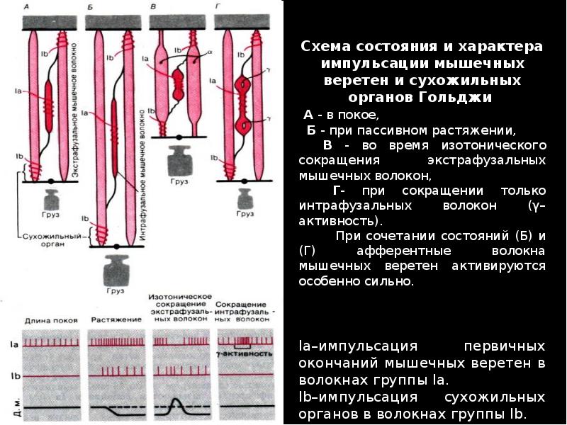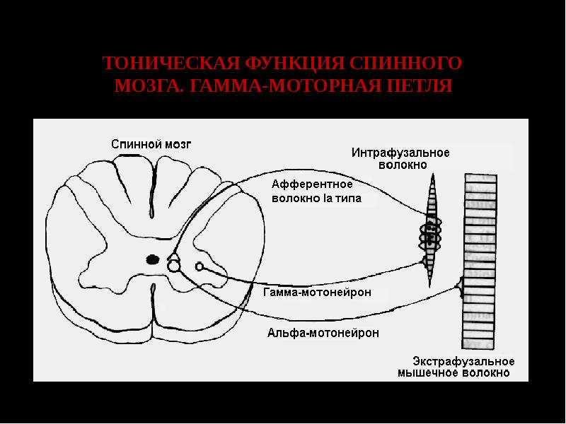 - 73. Коактивация альфа– и гамма–мотонейронов при движениях. α– и γ–мотонейроны возбуждаются одновременно; однако начало импульсации афферентов мышечных веретен
