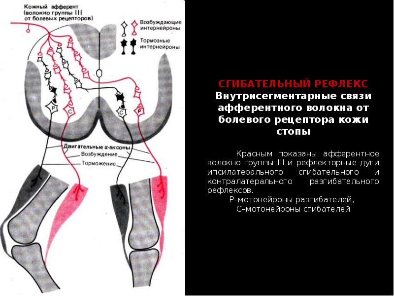 - 77. Сгибательные рефлексы Осуществляются при раздражении кожных рецепторов, рецепторов суставов, рецепторов давления
