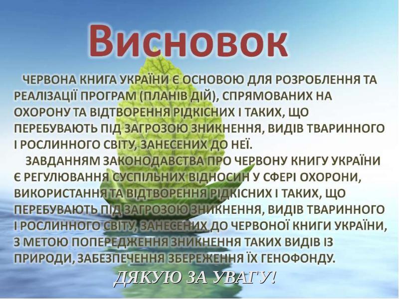 - 2. Червона книга України - основний документ, в якому узагальнено матеріали про