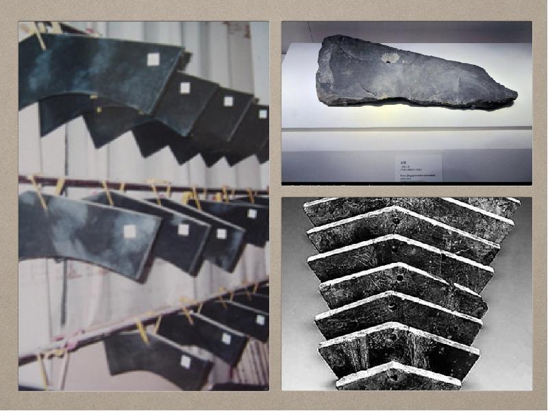 - 4. 石(磬) цин 石器,上面有个穿孔,敲击有声音的就是原始人类的磬了。 каменный гонг, петрофон, литофон (преимущественно в форме угольника);