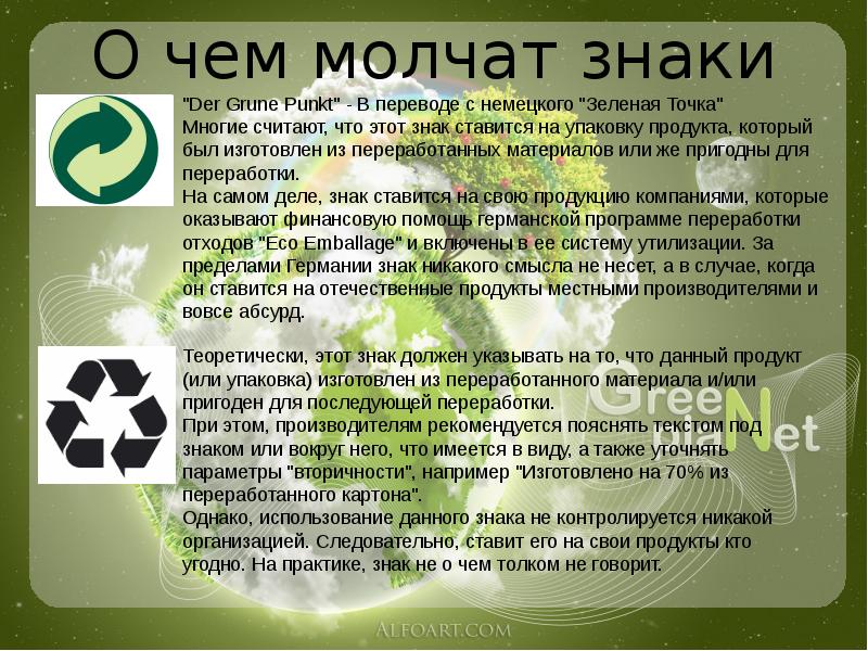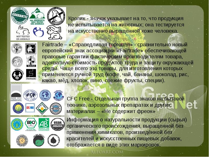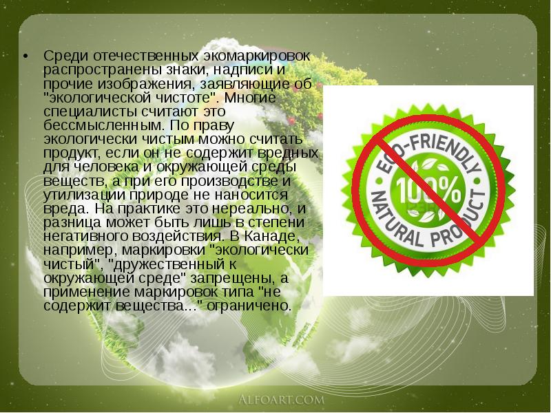 - 9. Среди отечественных экомаркировок распространены знаки, надписи и прочие изображения, заявляющие об
