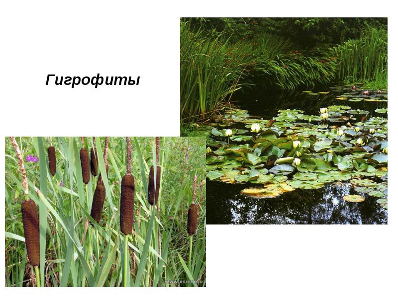 - 60. Гигрофиты (калужницы, болотные осоки, злаки, росянка, белокрыльник, рогоз, кислица и др.)