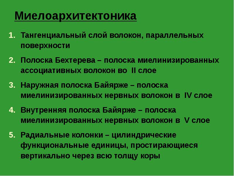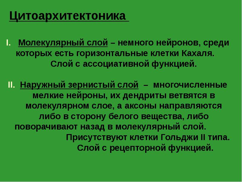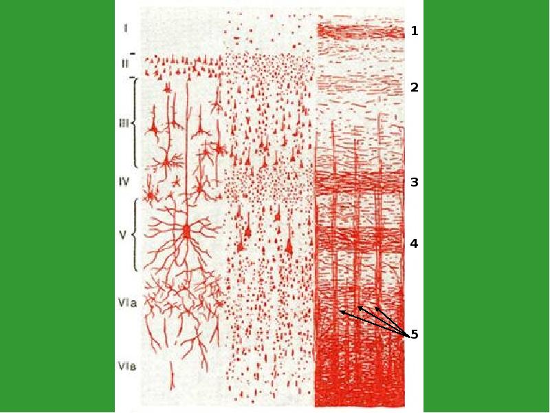 - 25. Цитоархитектоника Ганглионарный слой – объемные пирамидные клетки с дендритами, ветвящимися в
