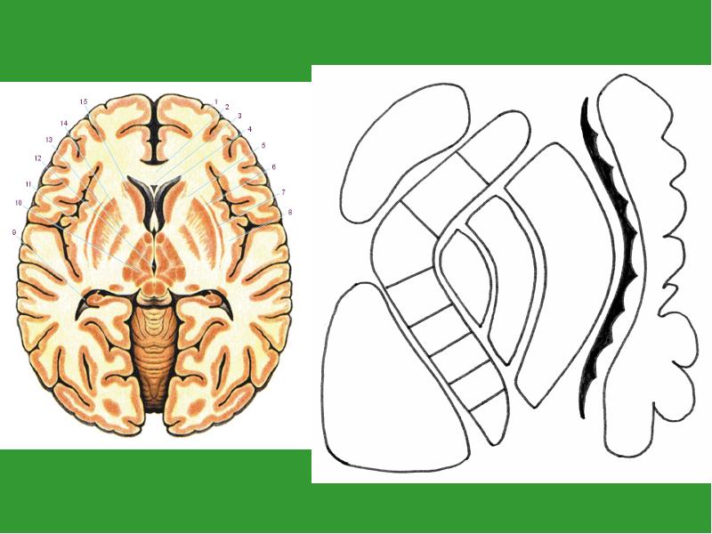 - 15. Рельеф медиальной поверхности Извилины: lobulus paracentralis preacuneus cuneus gyr.