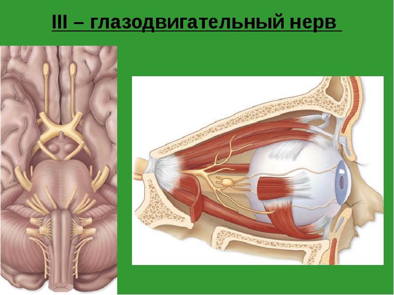 - 52. III – глазодвигательный нерв (n. oculomotorius) Функция: - двигательная – иннервирует