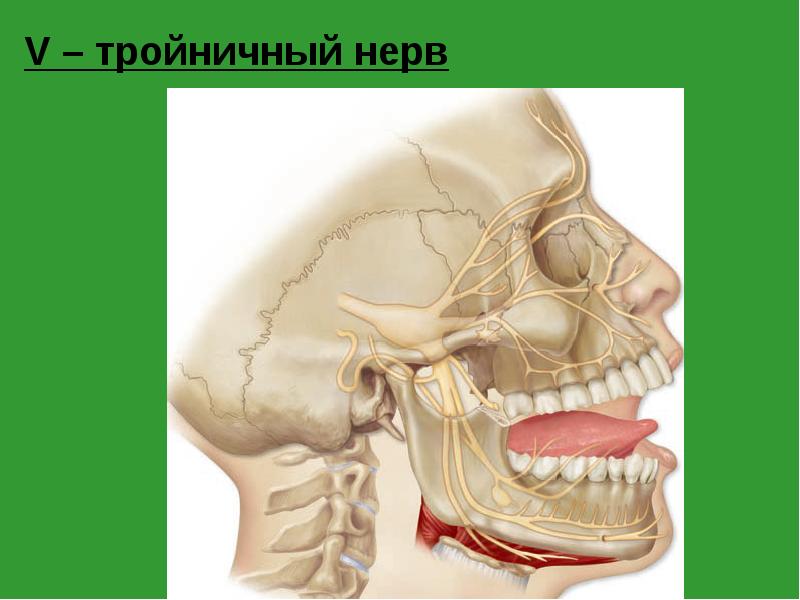 - 57. V – тройничный нерв (n. trigeminus) Функция: Чувствительная Нижнечелюстной