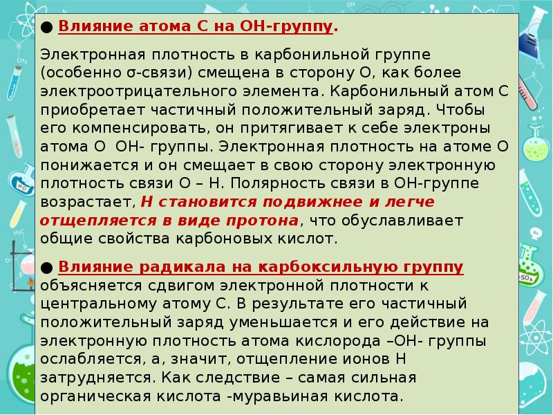 - 8. Карбоновые кислоты — класс органических соединений, молекулы которого содержат карбоксильную группу
