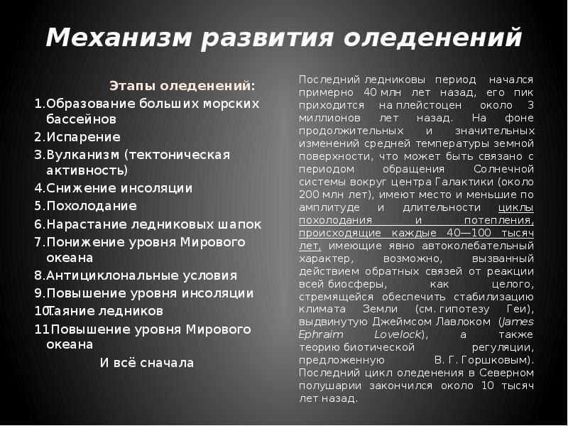 - 4. Механизм развития оледенений Этапы оледенений: Образование больших