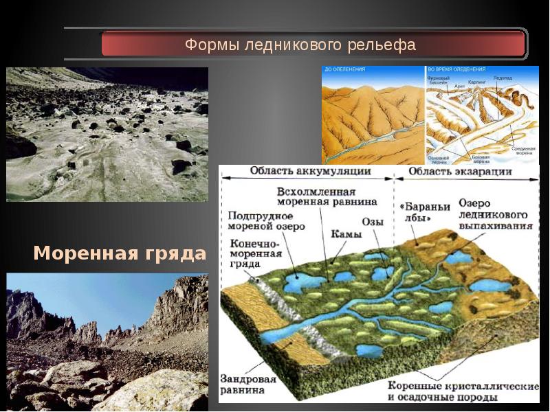- 35. Формы ледникового рельефа Моренная гряда